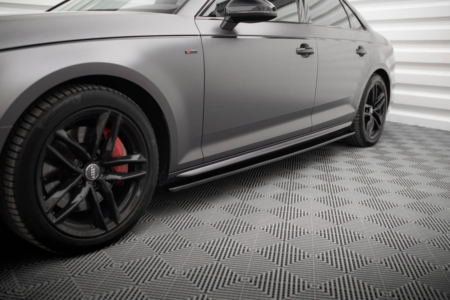 Difuzory bočních prahů Audi S4 / A4 S-Line B9, povrchová úprava černý lesklý plast ABS.