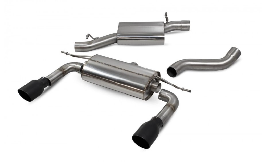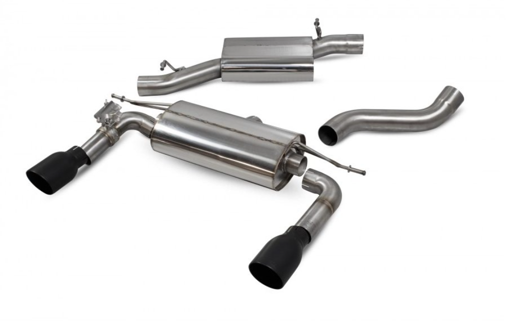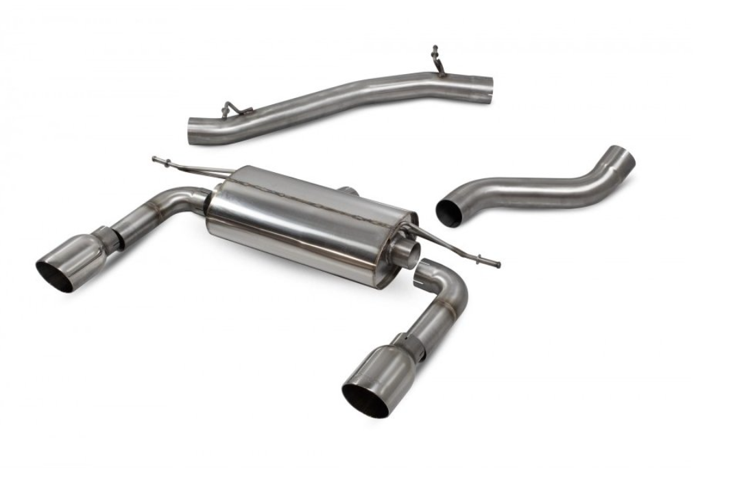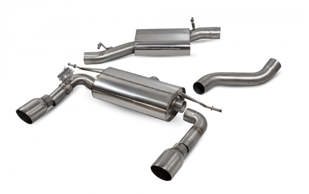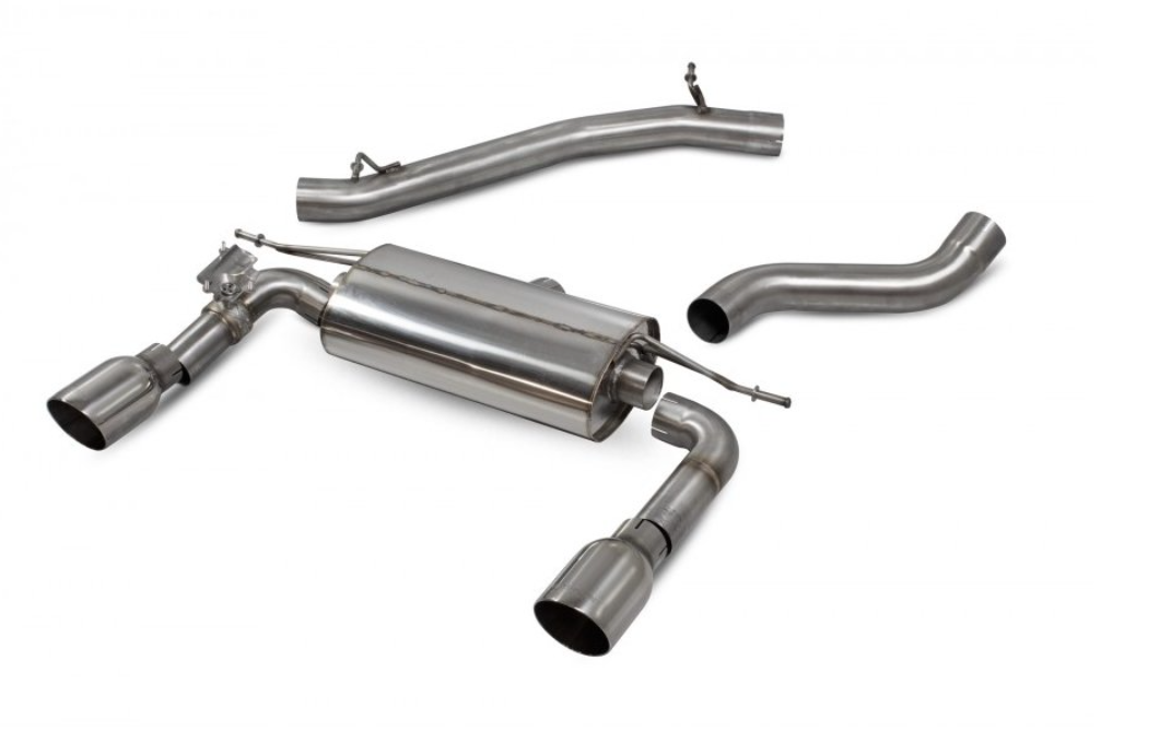 Cat-back Scorpion Exhaust made of T304 stainless steel. The entire exhaust is made up of 76mm diameter pipework. By improving exhaust flow and eliminating back pressure, Scorpion Exhausts can deliver both maximum power and, more importantly, a nice sound.