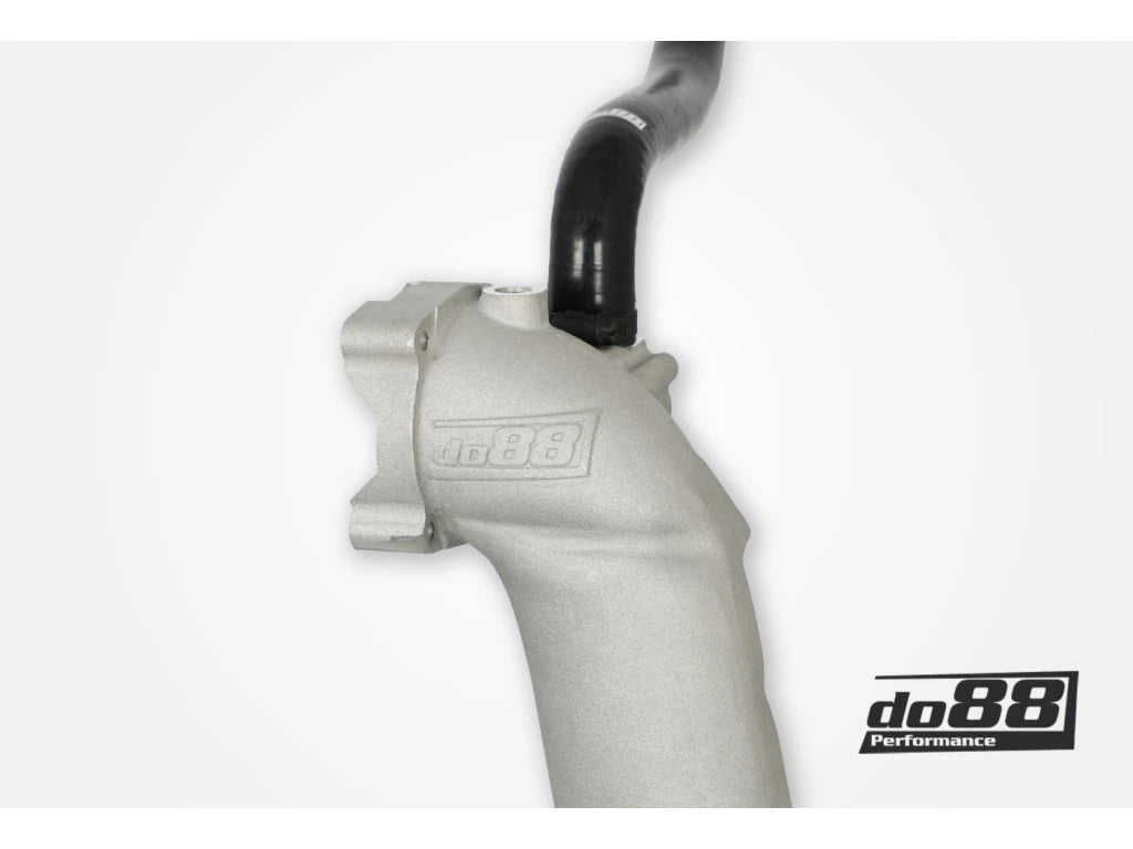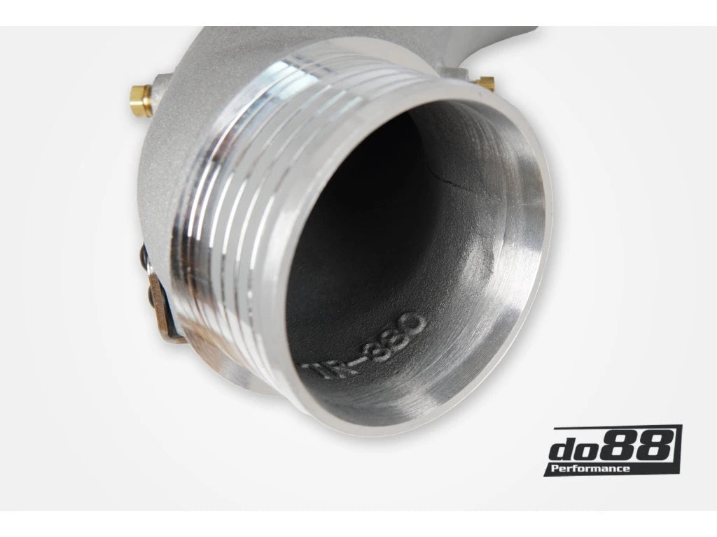Na studené straně náš systém odstraňuje dva potenciální únikové body. Lité hliníkové potrubí se táhne od výstupu intercooleru až k tělesu škrticí klapky. Potrubí má obrovské 86mm připojení hadice k intercooleru ve srovnání s OE trubkou, která má 64mm. Toto připojení odpovídá vnitřnímu průměru do88 Performance Intercooleru (80 mm) pro plynulý přechod. Potrubí také obsahuje dvě CNC opracovaná 1/8 NPT připojení, ideální pro vstřikování metanolu nebo výstupy, například pro senzor tlaku turba.
