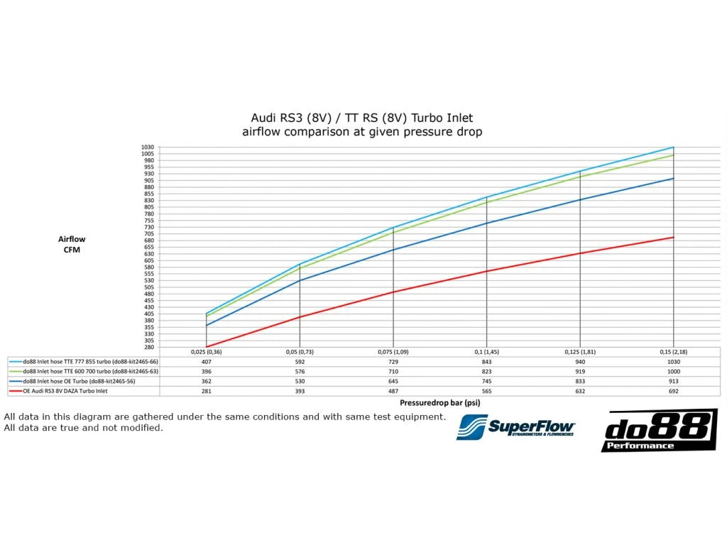Hadice turbo inlet do88: Vývoj zahájili 3D skenováním celého určeného prostoru v autě. To umožnilo efektivně pracovat s produkty v CAD prostředí pomocí SolidWorks. Celý systém vzduchového filtru je optimalizován pro lepší proudění vzduchu a poloměry a úhly byly mnohokrát přepracovány, aby bylo dosaženo co nejlepšího výsledku! Hotový produkt byl ověřen jak pomocí Computer Flow Dynamics (CFD), tak na Superflow SF1020 flowbenchi. Všechny snahy byly zaměřeny na to, aby bylo možné poskytnout reálná a důvěryhodná data.