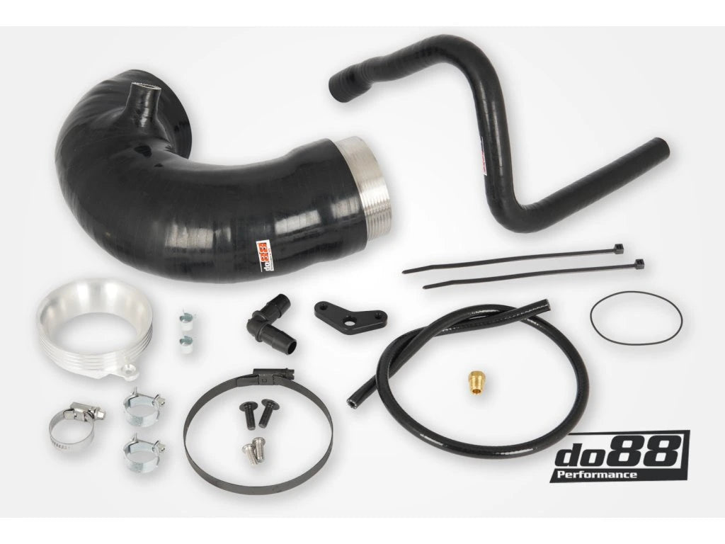 Sada obsahuje hadici v černém provedení, CNC obráběný adaptér k turbodmychadlu a vysoce kvalitní spony na hadice.