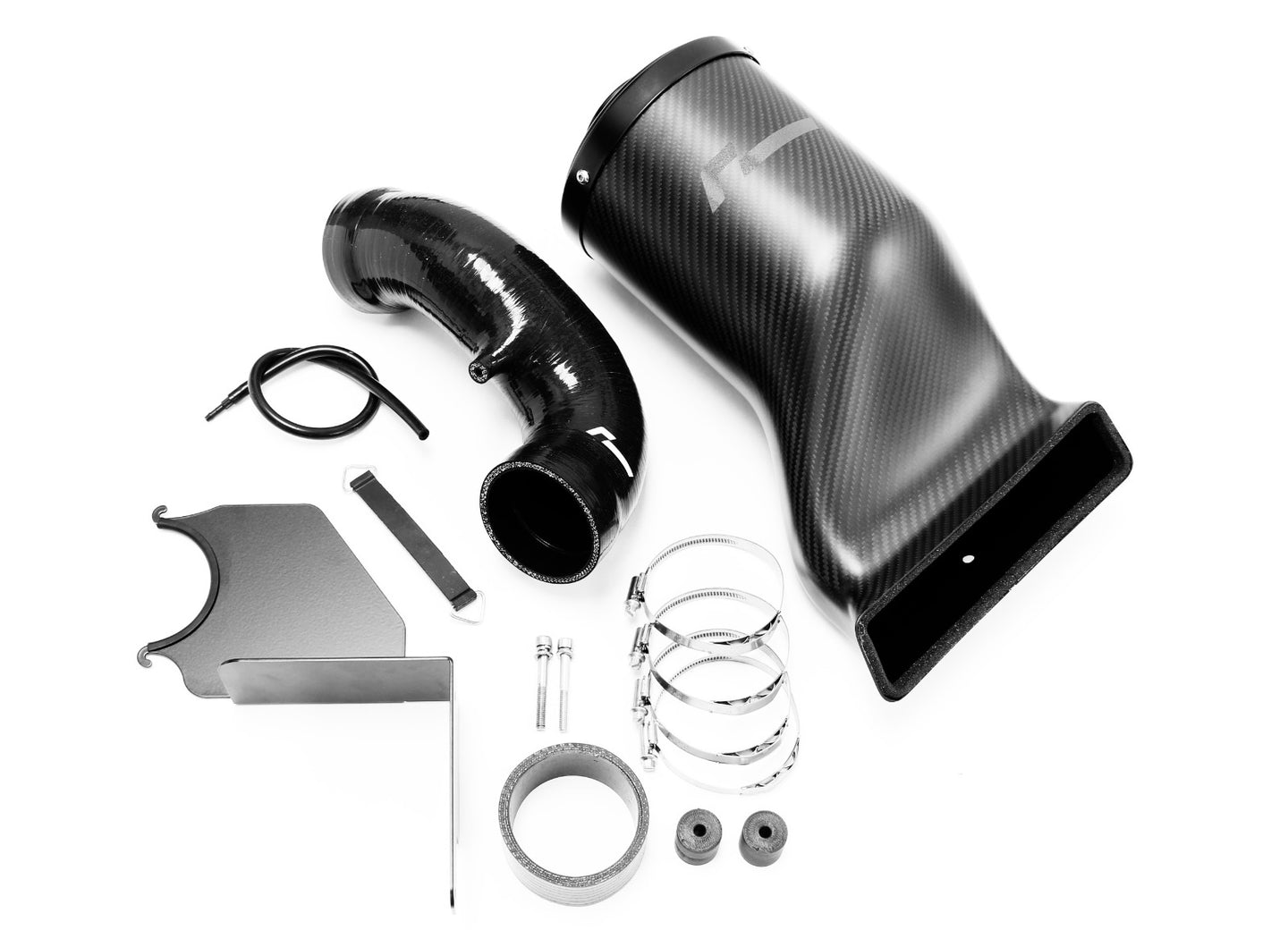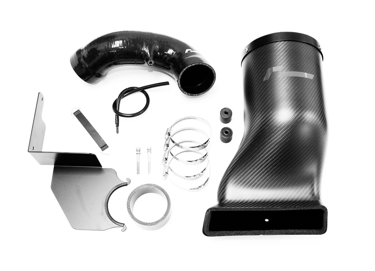 Součástí balení je také silikonová hadice pro vedení vzduchu od airboxu k turbodmychadlu. Tato hadice má vnitřní vícevrstvé vyztužení tkaninou a na černém povrchu decentní logo Racingline a stará se o hladké vedení vzduchu k turbu. Samozřejmostí je pak montážní materiál jako jsou spony, držáky atd.