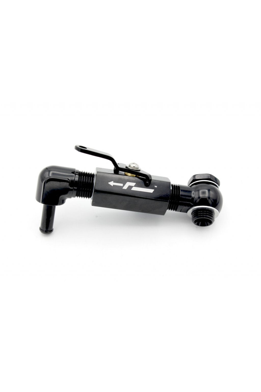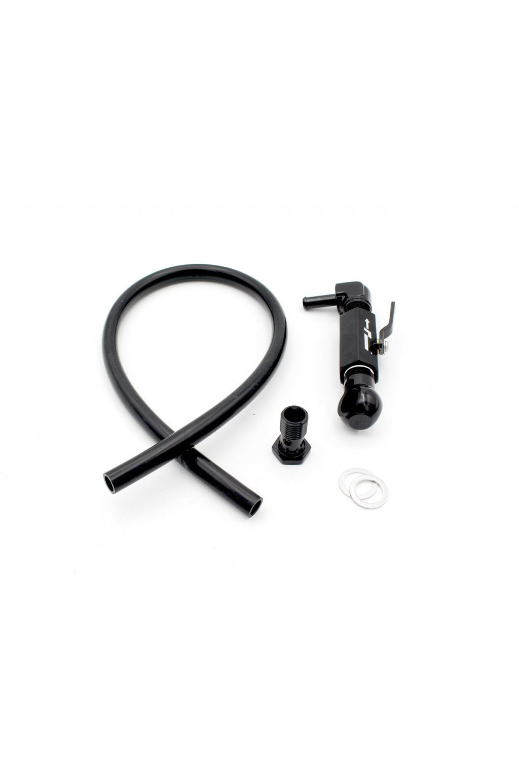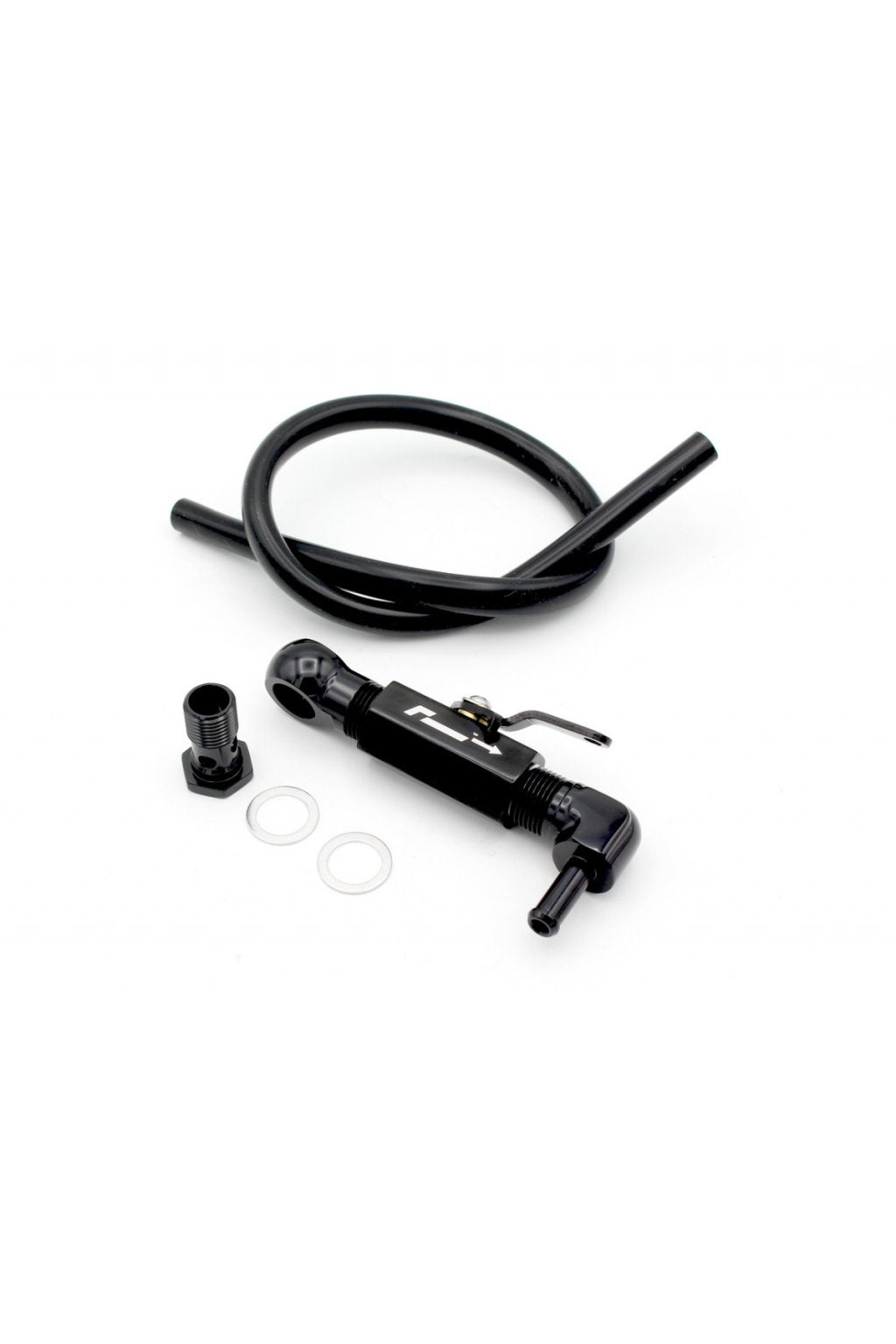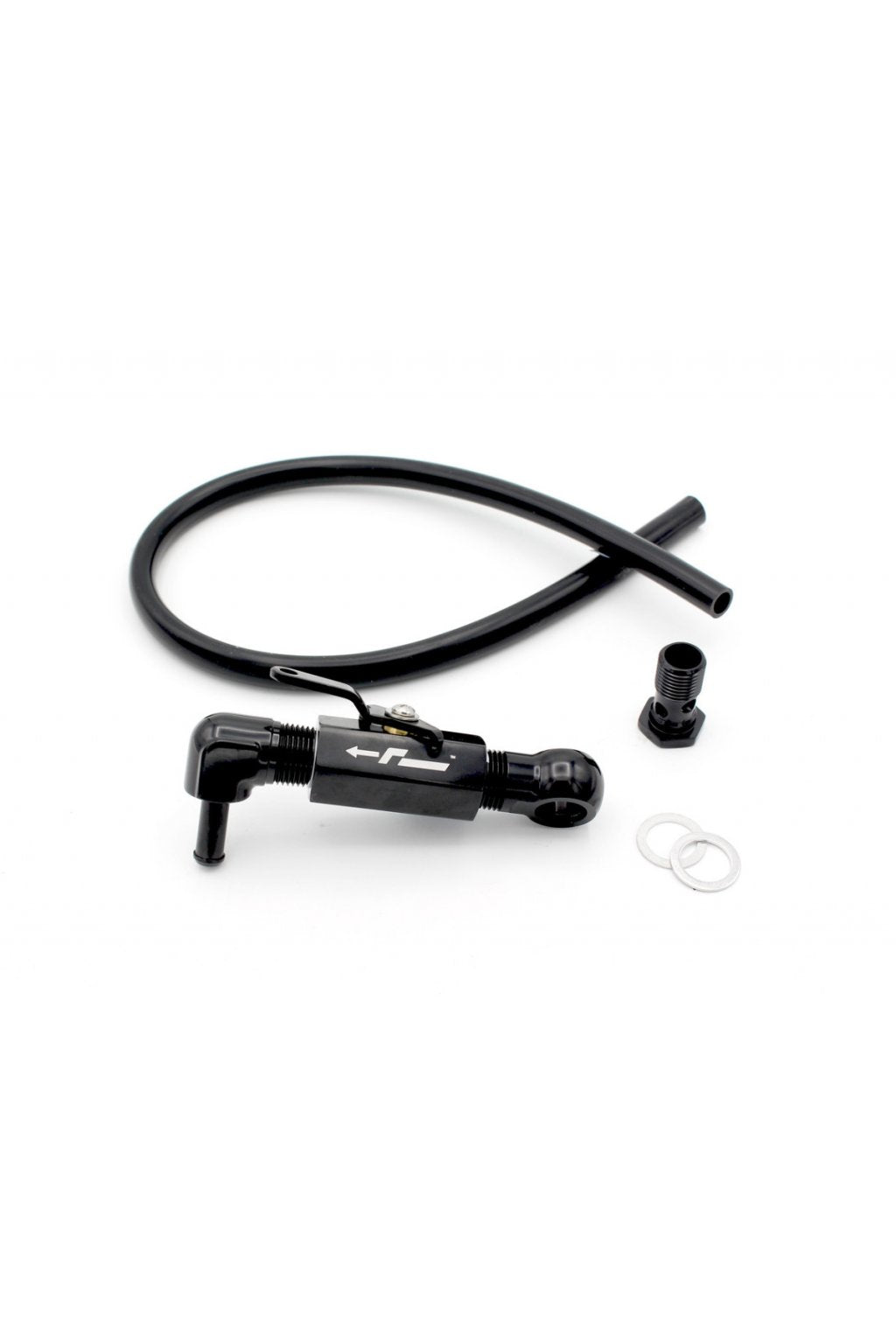 Kit v sobě obsahuje kuličkový ventil s pákovým ovládacím mechanismem pro snadnou manipulaci a 500 mm silikonové hadice pro usměrnění výtoku oleje z nádobky.