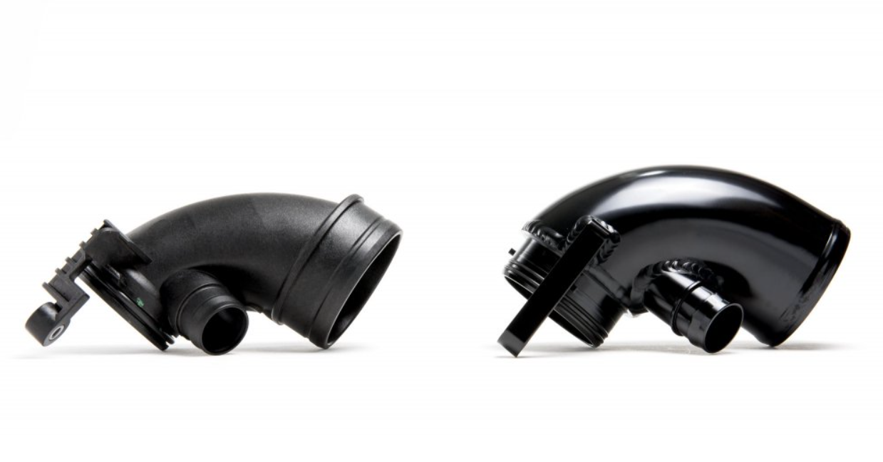 > U originálního dílu je dobře viditelné velmi prudké zůžení před vstupem do turbodmychadla, které představuje nežádoucí restrikci ve vedení vzduchu do motoru.