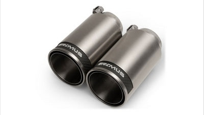 2 ks NEREZOVÝCH LEŠTĚNÝCH koncovek s KARBONOVÝM PRUHEM Ø 98 mm. Rovný řez s ostrým okrajem. V karbonovém pruhu je gravírované logo REMUS v nové grafice. Možnost regulace polohy v podélném směru i sklonu pomocí sférické spony. Unikátní řešení pro vaši individualizaci finálního vzhledu.