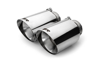 4 ks CHROMOVANÝCH NEREZOVÝCH koncovek s Ø 102 mm. Šikmý řez s ostrým okrajem. Možnost regulace polohy v podélném směru i sklonu pomocí sférické spony. Unikátní řešení pro vaši individualizaci finálního vzhledu.
