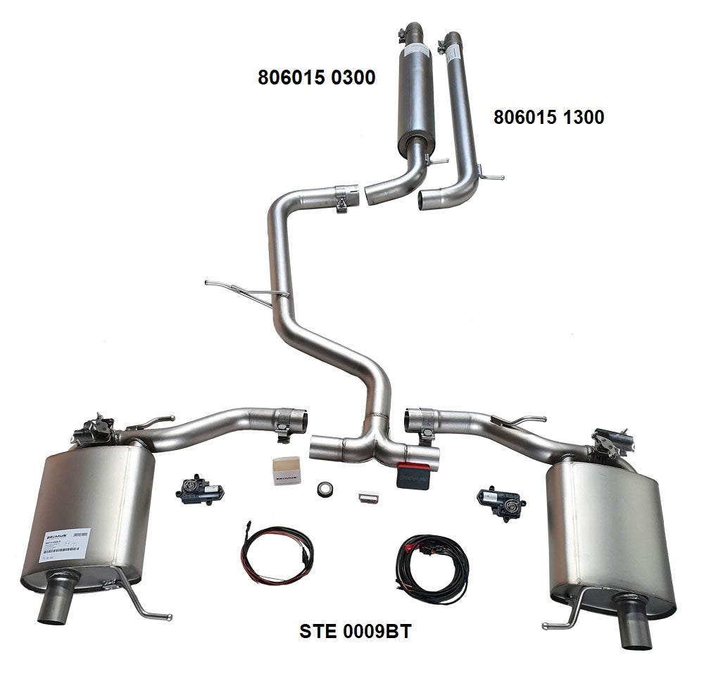 Tento HOMOLOGOVANÝ výfukový systém skládající se ze zadních tlumičů s integrovanými ventily pro ovládání zvuku a spojovacími trubkami byl kompletně odladěný na míru tomuto výkonnému 2.0 TSi motoru v akustické komoře. Systém je nutné zakoupit dohromady s jedním ze středních dílů (jinak není možné namontovat) a rozhodně doporučujeme rozšířit i o elektronickou sadu STE 0009 BT pro možnost ovládání klapek a regulace zvuku (viz dále). Celý systém ve zvětšeném průměru 70 mm (místo 65 mm originálního) tak sahá až ke katalyzátoru (GPF filtru u verze RS245). S tímto systémem dosáhnete u verzí RS220 a RS230 naprosto parádního hutného sportovního zvuku s oblíbeným střílení do výfuku, které je u převodovek DSG dále násobeno. Zvuk zachycený na videích zdaleka neodpovídá realitě, jelikož zde zaniká krásná barva a hloubka zvuku. Díky možnosti regulace je pak zvukový rozsah opravdu úžasný. U zmiňovaných verzí RS220 a RS230 doporučujeme kombinovat se středovým rezonátorem. U verzí RS245 s i bez GPF filtru pak doporučuje použít středovou trubku místo rezonátoru. I v této verzi pak zvuk umí být opravdu příjemně sportovně hutný a zásadně lepší než u sériového systému. Vždy u všech verzí ale platí, že vás ZVUK NEBUDE NIKDY ŠTVÁT a to ani na delších cestách s rodinou. Toto je největší výhodou oproti ostatním značkám na trhu – a sice skutečně profesionální ladění zvuku díky high-tech zázemí rakouské továrny s vlastní akustickou komorou, kde může být každý prototyp systému odladěn frekvenčně tak, že nikdy nezažijete nepříjemné dunění vibrace a rezonance s jinými částmi karoserie. Právě tyto stavy se pak často u jiných značek můžou stát v praxi noční můrou. REMUS v tomto nejmodernějším zázemí ladí dnes výfukové systémy i pro takové ikony automotive jako AMG, Aston Martin, Bentley, Maserati, Lamborghini nebo Porsche, takže opravdu máte jistotu, že zkrátka nejde šlápnout vedle. Výfukovému systému pak nasazuje v případě Octavie III. RS korunu dokonalosti možnost regulace zvuku celkem v 11 polohách a dokonce i s možností automatického natáčení klapek (a tedy zvuku) podle dosažených otáček. Zkrátka ideální hračka pro velké kluky. Pro využití funkce možnosti regulace zvuku a výkonu skrze integrované regulační ventily, je nutno zakoupit elektrický modul STE 0006BT, jinak je výfuk a jeho ventil přednastaven do fixního zavřeného stavu bez možnosti regulace. Systém je kompletně homologovaný a se zavřenými klapkami plní hlukové limity, takže se nemusíte bát ani budoucího měření na STK Zvýšení výkonu může být s naším systémem od 7 až do cca 15 koní (podle konfigurace, polohy klapek a vaší motorizace) – viz graf v galerii pro systém s rezonátorem na verzi RS230 se zavřenými klapkami.