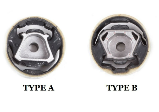 There are two types of bonded rubber bushes. Most of the cars use type A bush except VW Golf that uses A or B type. If you own VW Golf please check picture if you need A or B type insert. Type A insert is available here.